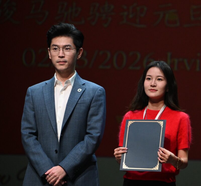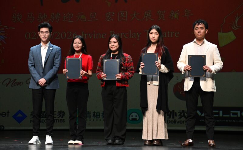 城市新闻2月23日尔湾报导,美国加州大学尔湾分校中国学生学者联谊会、美西南中国学生学者联谊会日前在柏克莱大剧院举办「瑞马迎春 西南共庆」美西南尔湾丙午马年春节联欢晚会,美西南留学生联袂献演,节目精彩,受到1000多中国留学生欢迎。中国驻洛杉矶总领事馆教育参赞黄伟、教育领事郭晋、尔湾市长Larry Agran代表Scotty Hong等出席致词,并向美西南学联主席李安妮、UCI CSSA代表等颁发贺状。