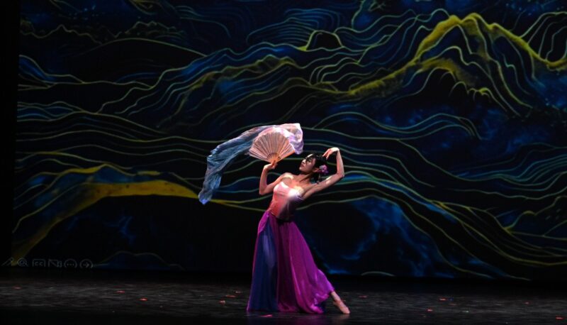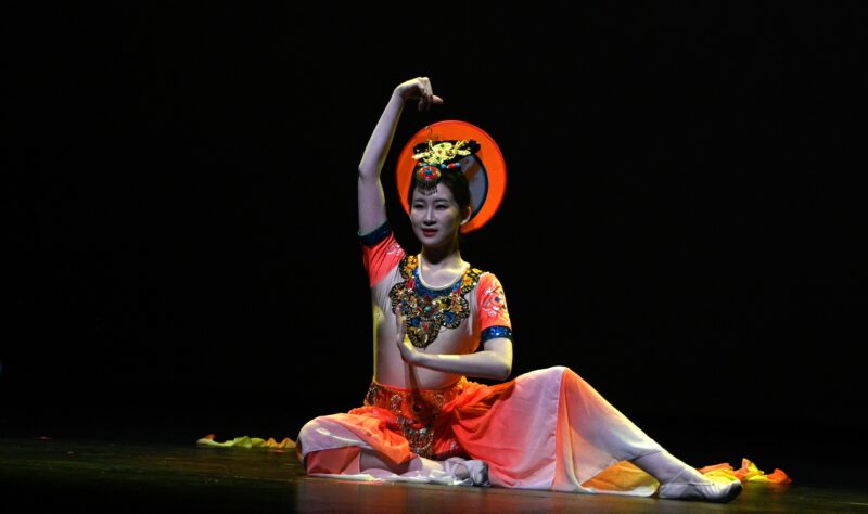 由孙圆融、张可芳带来的民舞串烧《闻铃·渡月》,在《无人之地》《澜水见月圆》的音乐中穿梭于壁画意象与人间烟火之间,舞姿轻盈而富有诗意。紧接着,K-pop 舞团 LUMINA(妖风舞团)带来多舞风融合的作品,以强烈节奏与创意编排点燃全场。随后,毕业于伯克利音乐学院的原创音乐人钱润玉 Runyu 登台,带来电琵琶原创作品《MINE》《Stray》,以中国琵琶与现代音乐的跨界融合赢得阵阵掌声。