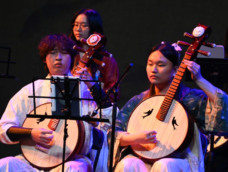 来自加州大学尔湾分校的简兮民乐团带来民乐合奏《青城山下》《大鱼》《合欢》,在古筝、笛子等传统民族乐器基础上融入西方乐器与现代编曲,展现国风音乐的全新表达,成为当晚最受留学生欢迎的节目之一。