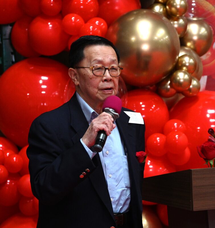 美国华人联合总会会长、美国克勤会计师事务所合伙人杨逸凡向狮子餵「红包」