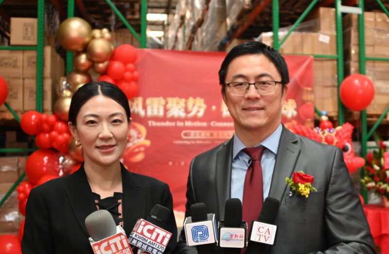 城市新闻3 月3日科罗纳市报道,锣鼓声声,金狮齐舞,开张花蓝林立,「风雷聚势 链通全球」 美国风雷集团洛杉矶仓储中心乔迁科罗纳市新址,乔迁开业典礼政要名流如云,一百多嘉宾共同见証美国风雷集团辉煌的十五年,并聚势迈向第十六年新里程碑。风雷集团新闻发言人、品牌负责人赵佩瑶(Peggy Zhao)主持典礼。