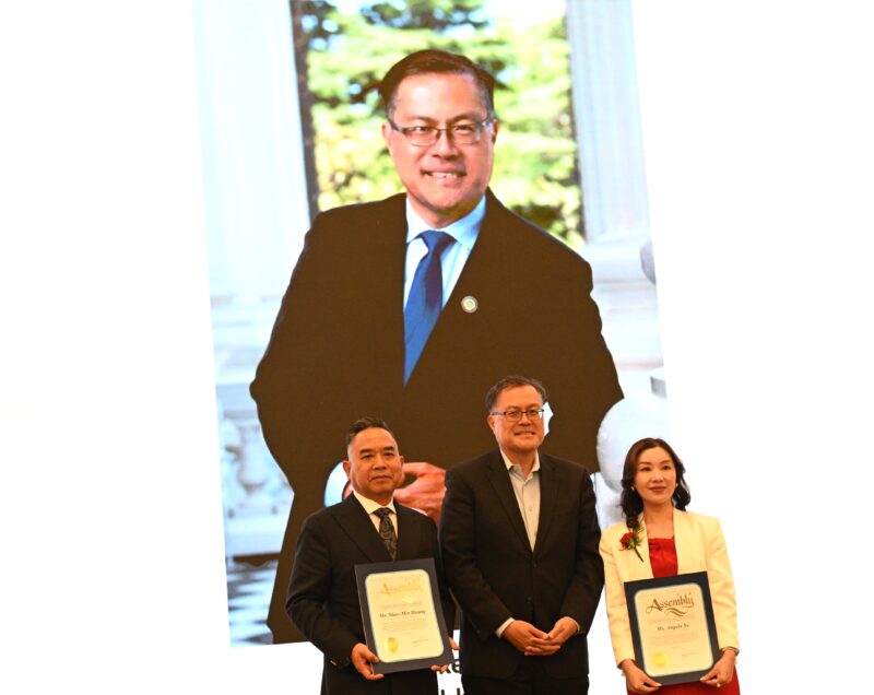加州众议员陈立德代表于泽伟颁发贺状