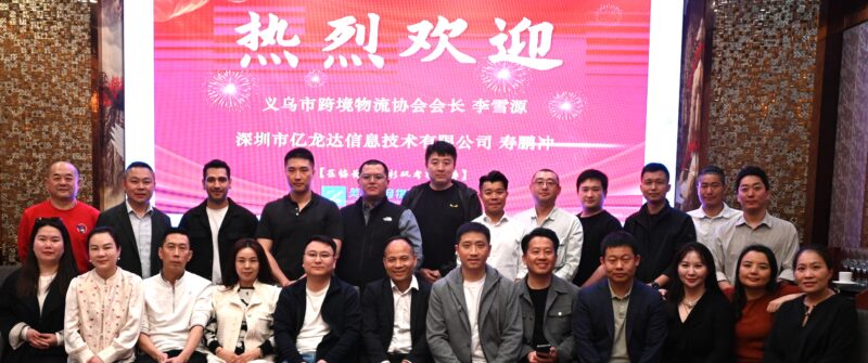 右起:义乌市跨境物流协会会长李雪源、孙浩诚会长、深圳市亿龙达有限公司董事长寿鹏冲