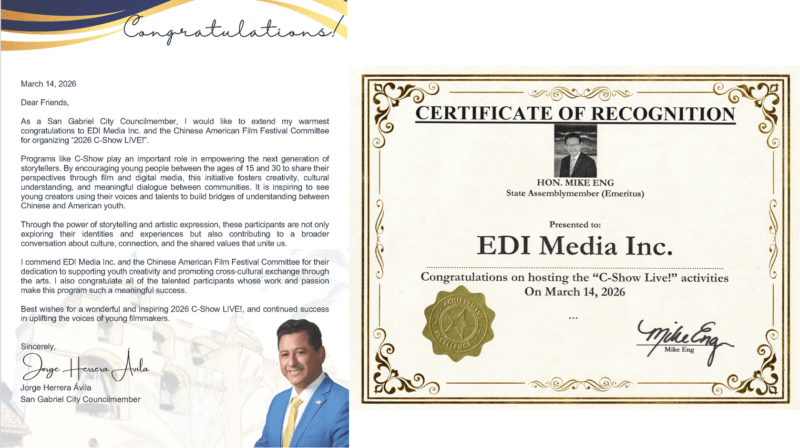 加州众议员方树强强调:“加州是多元文化汇聚之地,我们高度重视青年成长与发展。C-Show不仅是一个艺术竞赛,更是一个教育项目,鼓励年轻人用创意表达自我,用合作连接彼此。我期待这一项目持续扩大影响,让更多青少年受益。”方树强随后向主办方及获奖者颁发贺状。