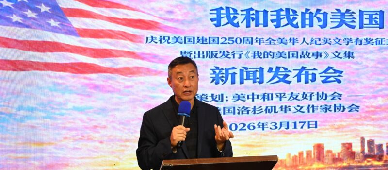有奖征文组委会总策划、美中和平友好协会主席鹿强发言表示,今年7月4日将迎来美国建国250周年,由美中和平友好协会策划,美国洛杉矶华文作家协会主办「我和我的美国」庆祝美国建国250周年全美华人纪实文学有奖征文活动正式启动。主办方面向全美华人征集纪实文学作品,并计划编辑出版纪实文学文集《我们的美国故事》,通过文字记录华人在美国的真实经历,奋斗历程及杰出贡献。