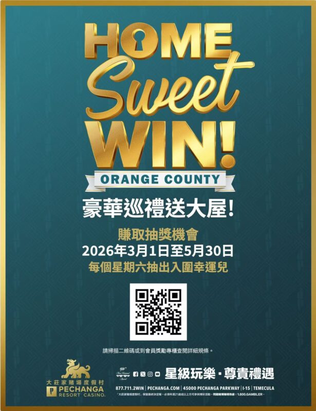 位於特曼庫拉市的大型度假賭場「大莊家賭場度假村」再度推出備受歡迎的「Home Sweet Win!」豪華巡禮送大屋活動,為一位幸運兒送出一棟全新大屋。今年活動更升級加碼,將送出一棟位於加州Irvine市熱門社區 Ovata at Great Park 的全新理想豪宅,讓幸運兒擁有令人嚮往的新住址。