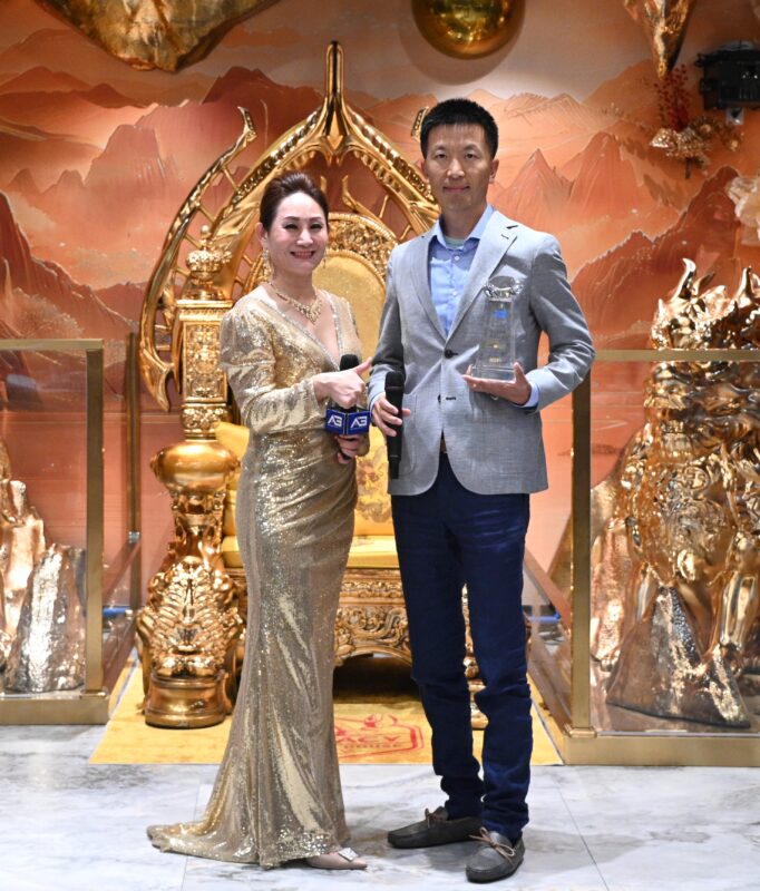 Angela Liu总裁向AG ONE优秀经纪人Roger Li颁奖