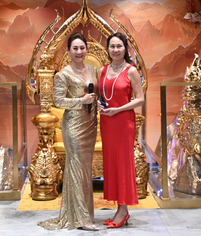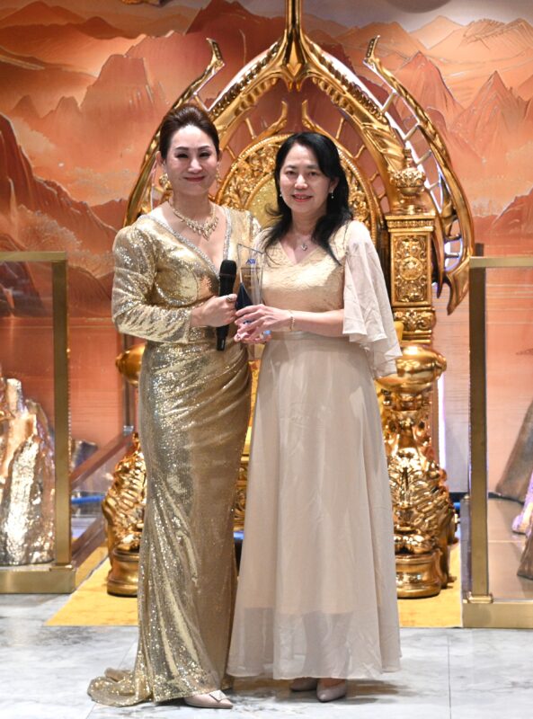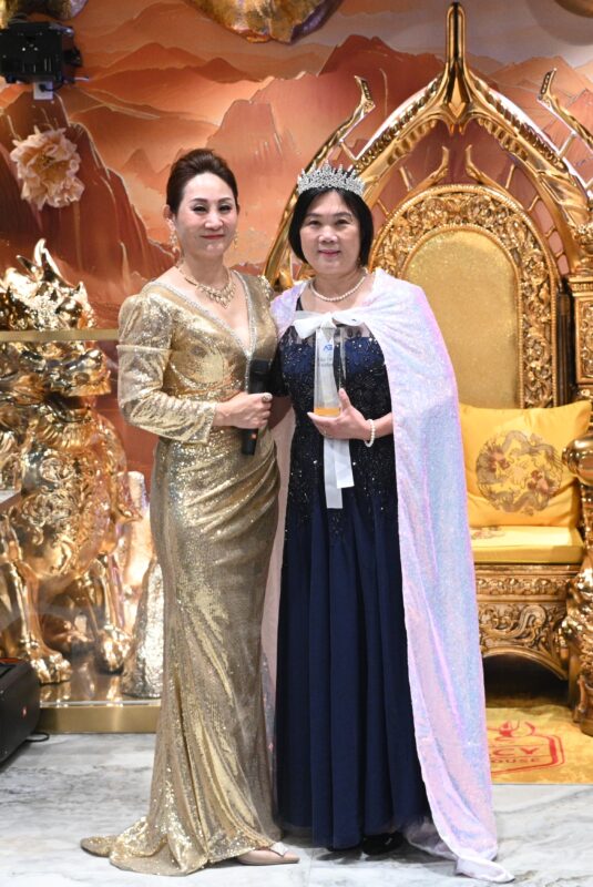 Angela Liu总裁颁发AG ONE Realty年度销售冠军Jerry Jiang、亚军Rika Sato、季军Jean Liu 颁奖,亚军和季军还披上华丽礼袍、戴上皇冠,成为该公司「地产女王」。他们先后发表获奖感言,说出自己心中故事,受到与会者热烈欢迎。