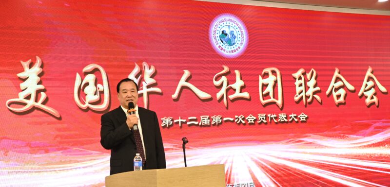 获得高票连任的美国华人社团联合会共同主席团主席许承武致词