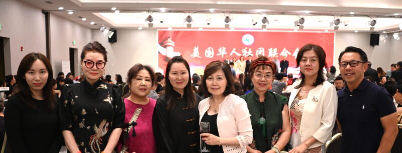 美国华人社团联合会主席常委、文艺汇演统筹邬索菲(左4)与伙伴们合影