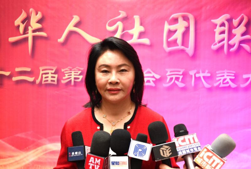 美国华人社团联合会监事长路霞接受各大媒体记者访问