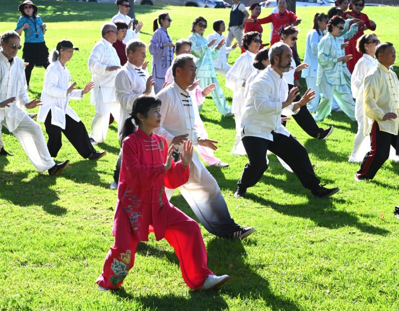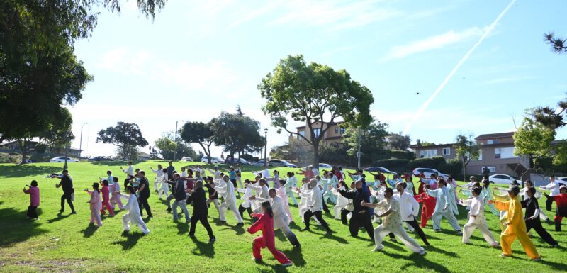 城市新闻3 月21日蒙特利公园市报道,由北美武苑联合美国量子太极丶美国武医研究院丶美国形意八卦研究会丶美太极丶南加卅华人华侨联合总会丶南加卅中华高校联盟教育专委会多家机构共同主办的首届国际太极拳日活动在巴斯公园隆重举行。来自当地及周边地区的太极爱好者齐聚一堂,以一场气势恢宏的集体24式太极拳表演,展现中华传统武术的独特魅力与文化底蕴。