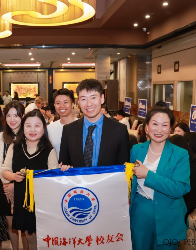 右起:中国海洋大学校友会代表张漓、马沫克(Oliver Ma)、北美高校联合会主席陈峥