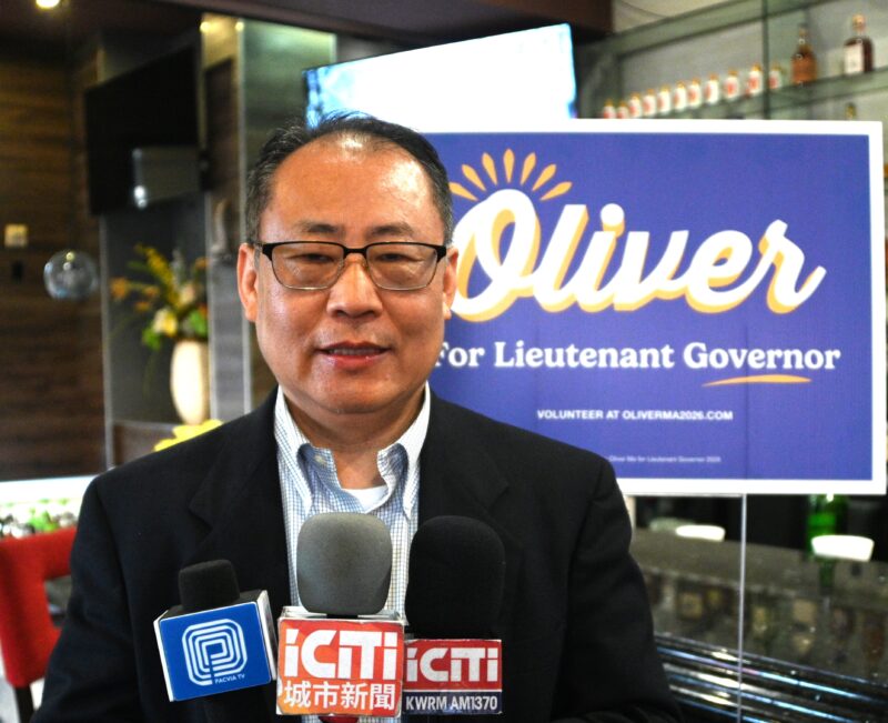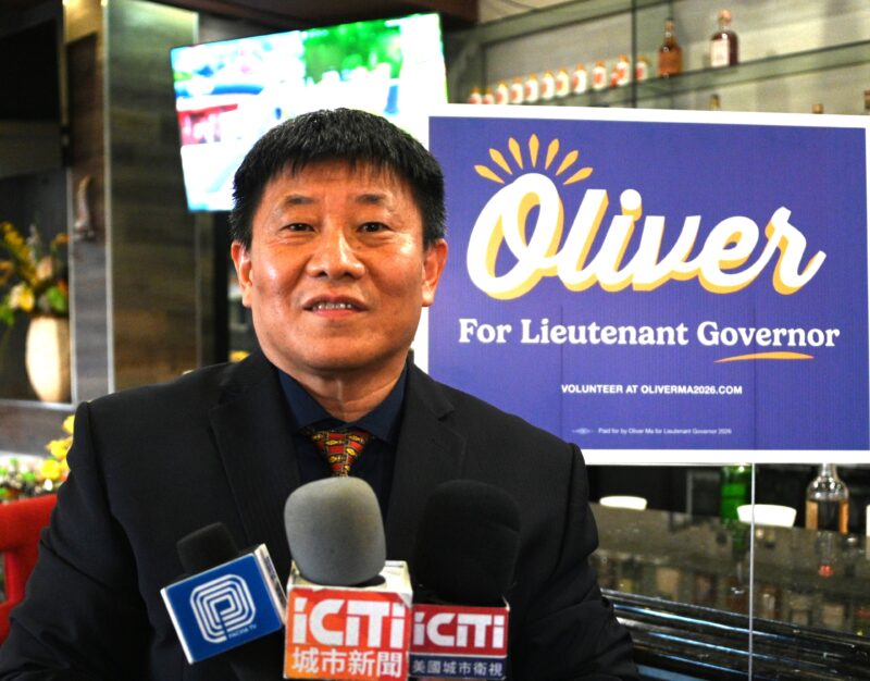 加州副州长候选人马沫克(Oliver Ma)接受各大媒体记者访问
