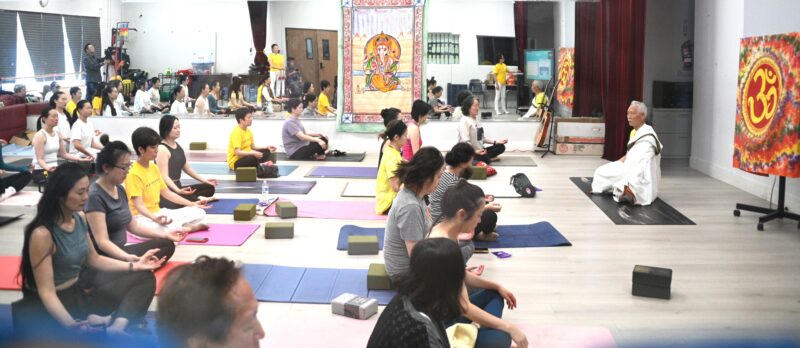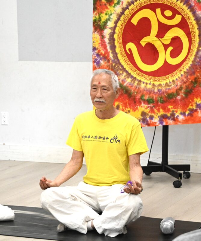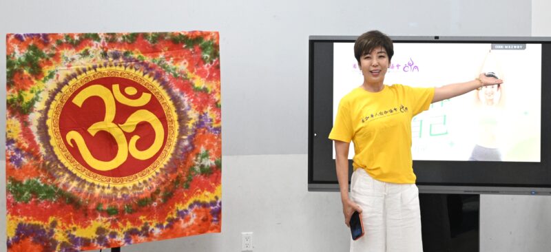 南加华人瑜伽协会创会会长杨敦平亲临活动现场做开场唱颂引导