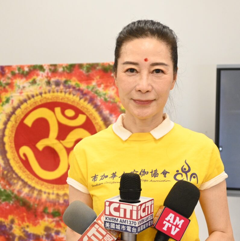 南加华人瑜伽协会会长姚鸿雁接受各大媒体记者访问