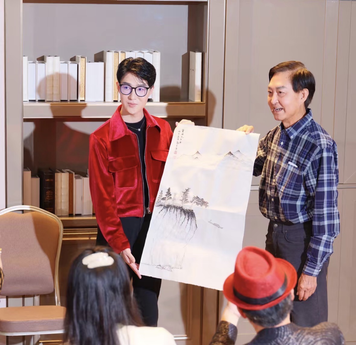 * 水墨传情: 张大千弟子郑子亭教授现场赠送山水画作,致敬艺术传承。