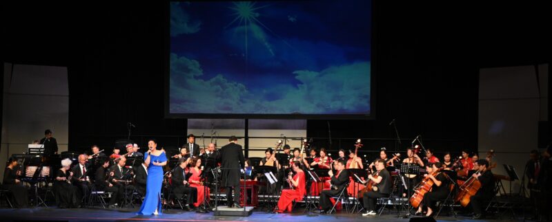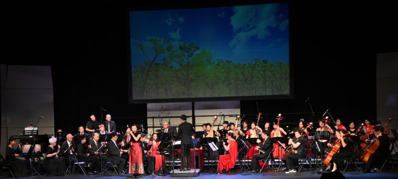 演出尾声,由邢长江指挥,加州爱乐艺术团、美国雅韵合唱团、扬帆合唱团与全体演员携手同台,共同献上大合唱《用心成就》。乐曲旋律庄重悠扬、情感真挚深沉,既是对美国中华国乐团十年耕耘发展的深情礼赞,也饱含着对中华文化在海外薪火相传、繁荣发展的坚定信念与美好祈愿。