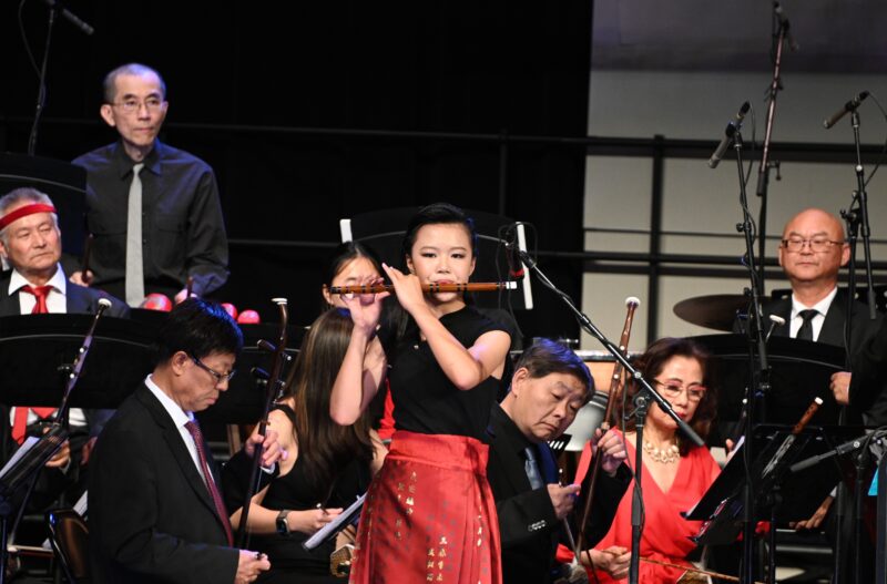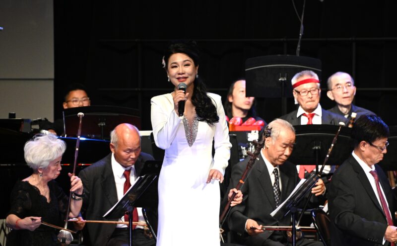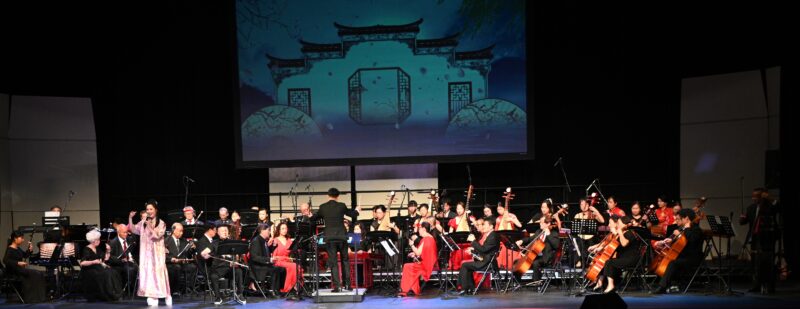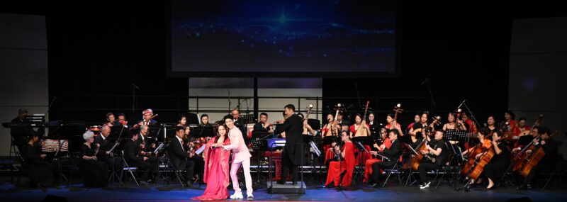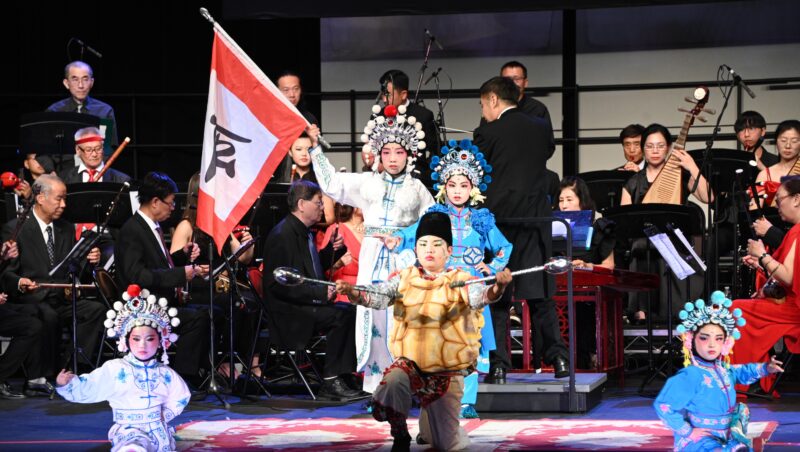 随后,美国中华国乐团盛装登台,在指挥家张钊的执棒下,一曲民族管弦乐《序曲·小刀会》雄浑奏响,乐曲气势奔放、层次丰盈,淋漓尽致展现出中国民族器乐的恢弘气度与独特艺术张力。