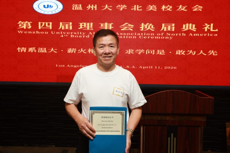 王俭美表示,校友之间的交际,本质上是一种高信任、低防御、可持续的社会连接,究其原因,一是源于共同教育背景与精神认同的校友之情;二是源于故土乡音与文化记忆的同乡之谊。校友会既承载情感归属,也促进合作发展。正如英伟达创始人黄仁勋所说,华人在AI领域占据50%比例,离不开顶级教育、同窗文化、开源生态,说的就是这个道理。我们相信,在新一届理事会的带领下,温州大学北美校友会必将成为连接母校与世界的重要桥梁,凝聚校友情谊的温暖港湾,迈向未来发展的坚实平台。