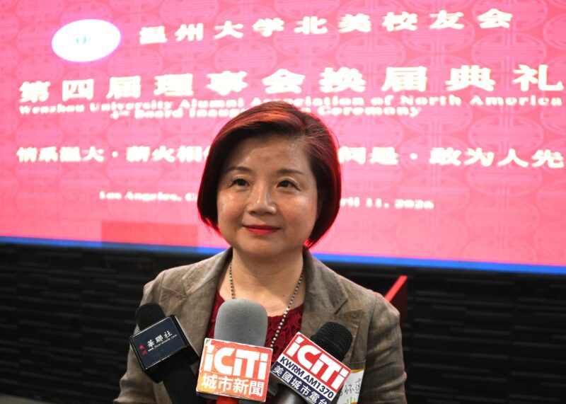 温州大学北美校友会第4届会长潘平微接受各大媒体记者访问