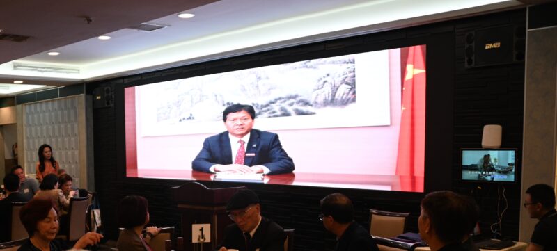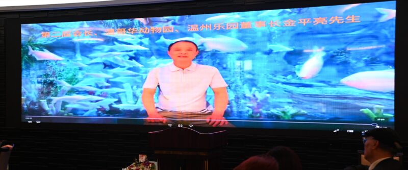 温州大学副书记庄兴忠视频致词,对潘平微担任会长及温州大学北美校友会换届成功表示祝贺