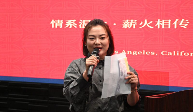 温州大学北美校友会财务长杨菲菲鸣谢捐款人