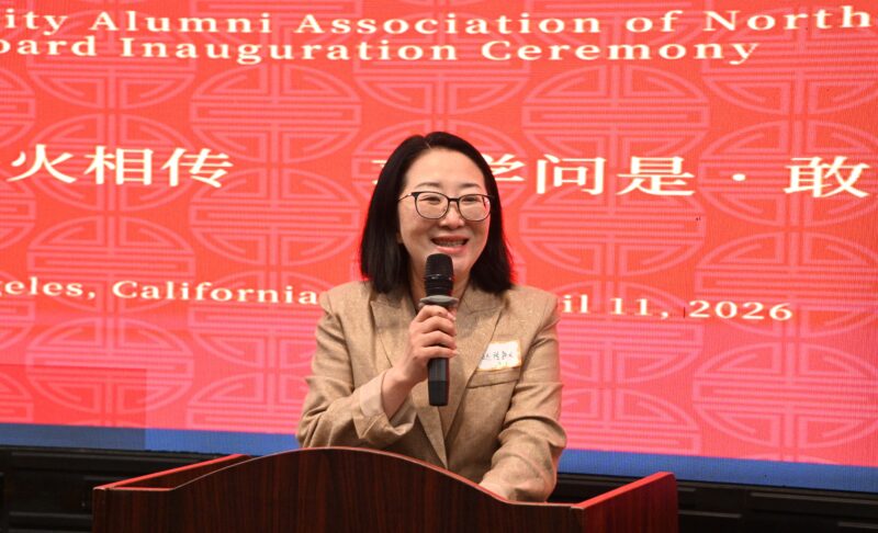校友李秀曼在贺信中说,北美温州大学校友会第4届理事会换届典礼在洛杉矶隆重举行。众望所归的潘平微老师将挑起沉甸甸的信任担任第4届理事会会长,她代表美国东部的校友送上最真诚的敬意和最热烈的祝贺。她说,校友会之于我们,不仅仅是一个组织,更是一座桥梁,一处港湾,它连接着母校与北美,连接着校友与校友,也连接着我们共同走过的青春与记忆。在这里,我们相识、相聚、相互扶持,也在彼此的陪伴中,找到属于温大人的归属感与旧时光的回声。相信在潘平微会长的带领下,校友会必将注入更多新鲜活力,这棵属于温大人的大树,必将枝繁叶茂,汇聚成林,荫泽更多后来人。