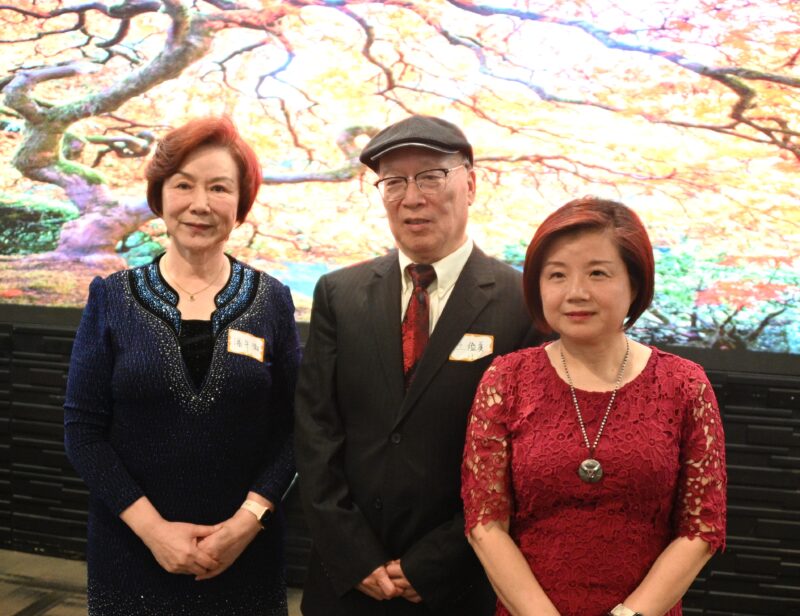 温州大学北美校友会创会会长王俭美(中)、第三届会长潘怀莲(右)、第四届会长潘平微(左)