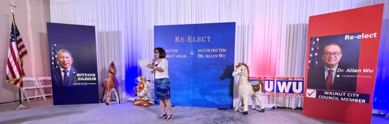 核桃市长Ritchie Cajulis、副市长伍立伦(Dr. Allen Wu))表示,提高服务社区质量、保障社区公共安全,是他们的优先事项。加州参议员Bob Archuleta和夫人出席支持,他在致辞中充分肯定二位市长在执政期间的政绩,并表示全力支持他们竞选连任。Archuleta在致辞中强调,作为市长、市议员把城市搞好意义重大。一方面是良好、安全的社区环境,稳定的财务状况以及优质的教育,会吸引更多的居民前来居住,使得城市的房地产价值上升,这对居民来说是最大的福祉。另外,良好的社区环境可以带动周边社区的发展。