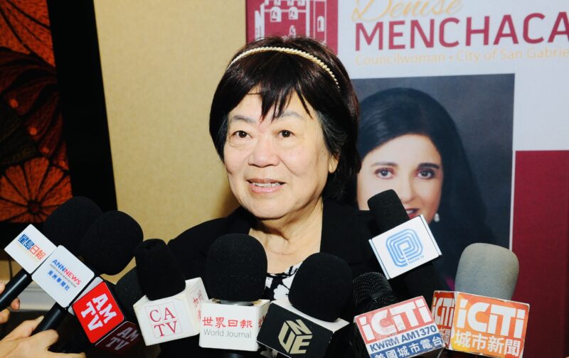 社区代表、加州中华工商妇女企业管理协会监事长陈凤仪(Florence)接受各大媒体记者访问