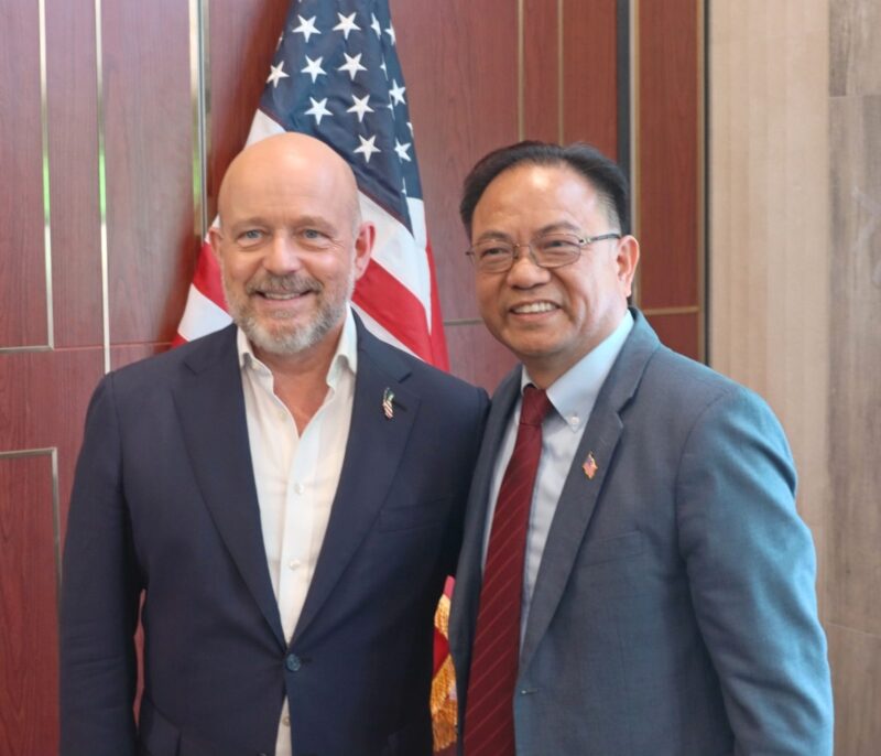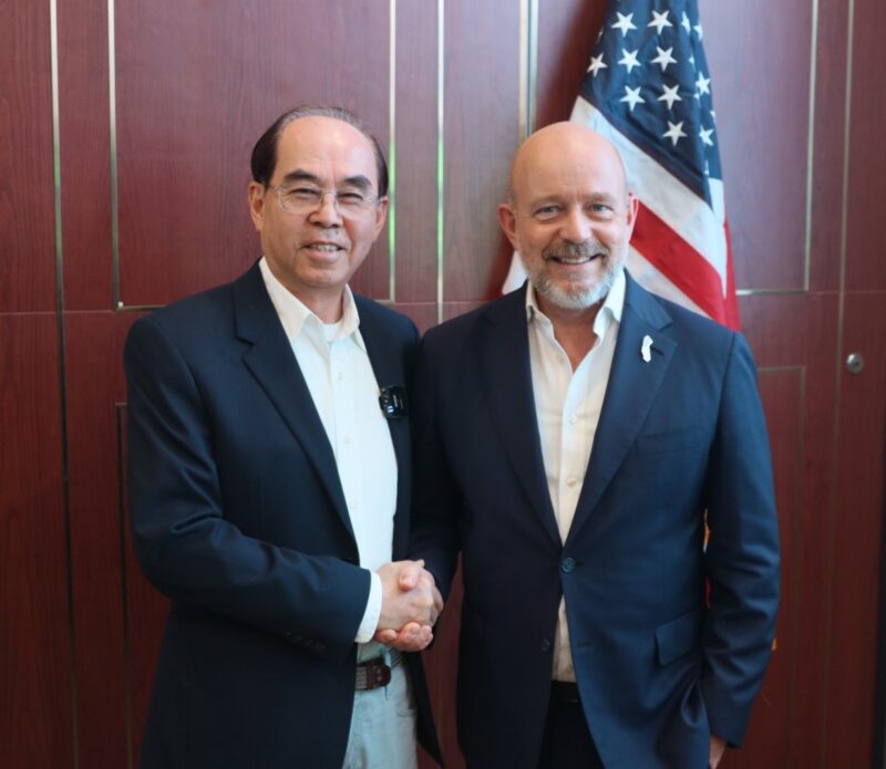 钻石吧市前市长张文彬(左)、支持加州州长候选人希尔顿(Steve Hilton右)