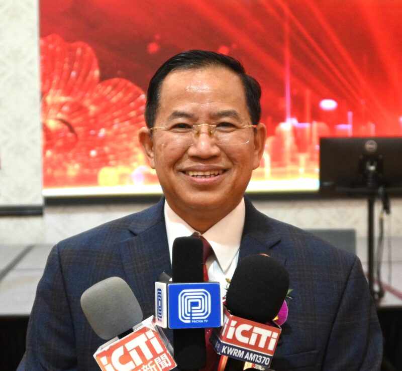 世界越柬寮华人团体联合会理事长招铭祺接受各大媒体记者访问