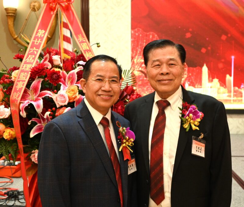 左起:美国柬埔寨华裔会馆会长张键伟、监事长杨利武