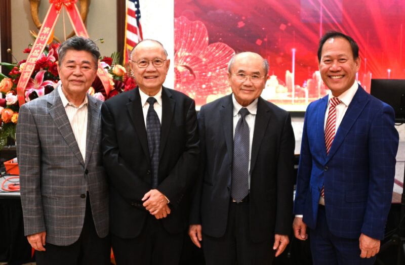 左起:世界越柬寮华人团体联合会荣誉主席李宏良、陈兴邦律师、南加州潮州会馆会长谢金昭、南加州海南会馆荣誉会长符敦远