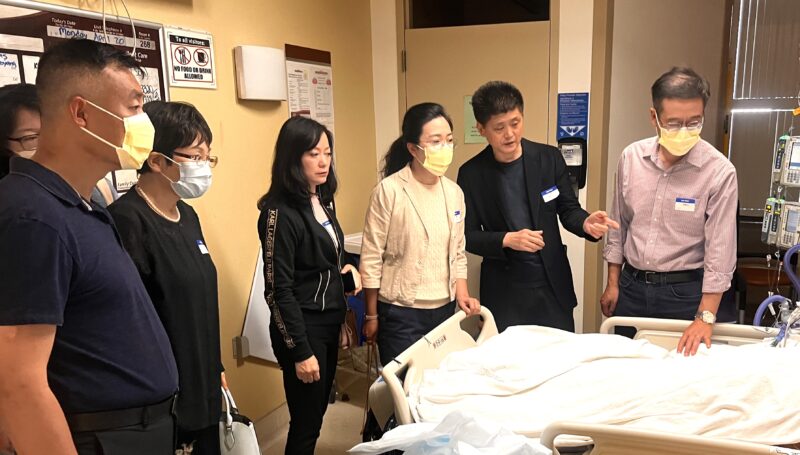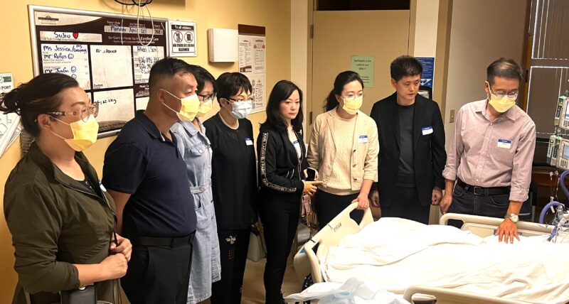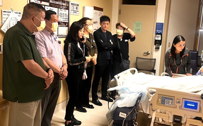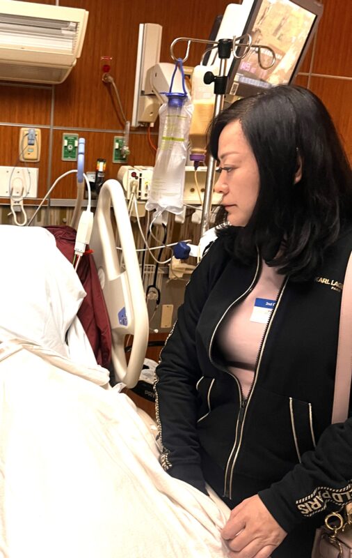 4月20日上午,张素久大姐病危信息在社区传开了,受中国驻洛杉矶总领事馆总领事郭少春委托,中国驻洛杉矶总领馆副总领事郭志强、领侨处主任王琦、侨务领事尚程程赶到Pomona Valley Hospital急救病房探望张素久大姐,张勇、江风年、赵林、郭颂、陈慧碧、许承武、路霞、林连连、方蕾、朱俊英、林旭、王蜀、刘晓红、王明明、北奥、申玉明、张莉安、赫景秀、曲建平、刘玮、张兰姬、邵闯、周菲菲、沈丽玉、张齐英等也都急匆匆赶到张大姐身边,在ICU病房守候着,大家都希望张大姐能有生命奇迹发生。