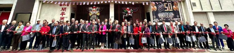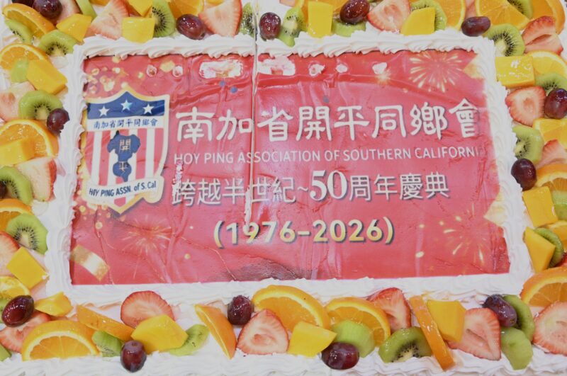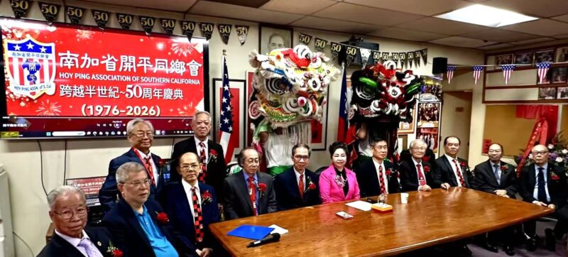 当日上午11时,五十周年开幕纪念仪式于洛杉矶华埠开平同乡会会所(411 Bamboo Lane)隆重登场,由书记长周赐轩担任大会主持。活动首先由「龙冈名誉轩瑞狮团」带来热闹的祥狮献瑞,随后展开隆重的剪彩仪式。现场参与剪彩的重磅嘉宾云集,包括:中华会馆主席聂泽英、副主席朱柏田、顾问马树荣,顾问马培道与顾问伍尚齐;南加省开平同乡会主席罗淑珍及元老周锦瀚、关文煜、张自豪;旅美开平同乡总会主席司徒永峰、副主席周天民与潘伟伦、顾问潘强淋、周德强与李健民;纽约开平同乡会主席邓学源与关祖洞、顾问余振文;以及开平乡亲、加州高等法院法官周本立等。