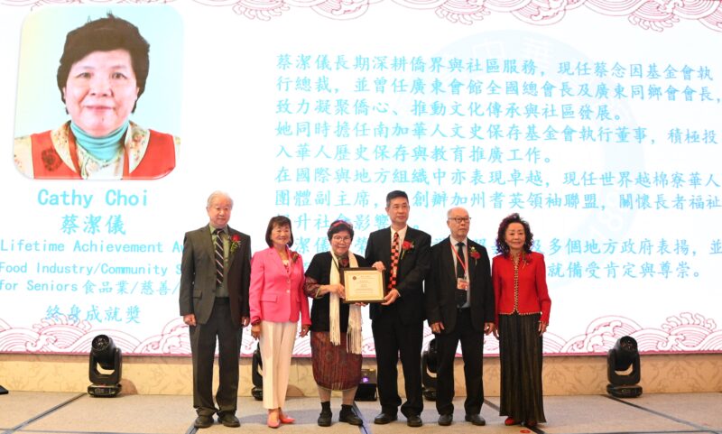 城市新闻4 月25日中国城报道,蔡洁仪获罗省中华会馆颁发终身成就奖,她长期深耕侨界与社区服务,目前担任蔡念因基金会执行总裁、广东会馆总会长。她致力凝聚侨心、推动文化传承与社区发展。同时,她担任南加州华人文史保存基金会执行董事,为华人历史保存与教育推广工作做了大量工作。在国际与地方组织中她也表现卓越,现任世界越柬寮华人团体联合会副主席并创办加州耆英领袖联盟,关怀长者、提升社会影响力。她为社区做出积极奉献,备受政府和社区的肯定。