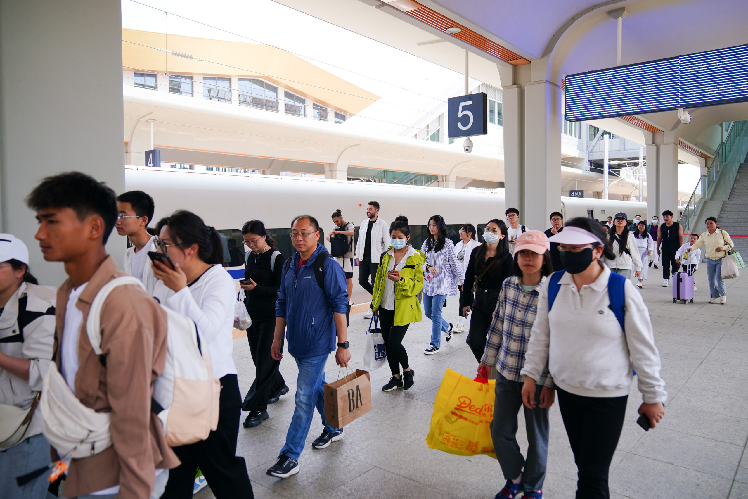 4月4日,云南蒙自,旅客抵达红河站。据中国铁路昆明局集团有限公司发布的消息,2024年的清明假期,铁...