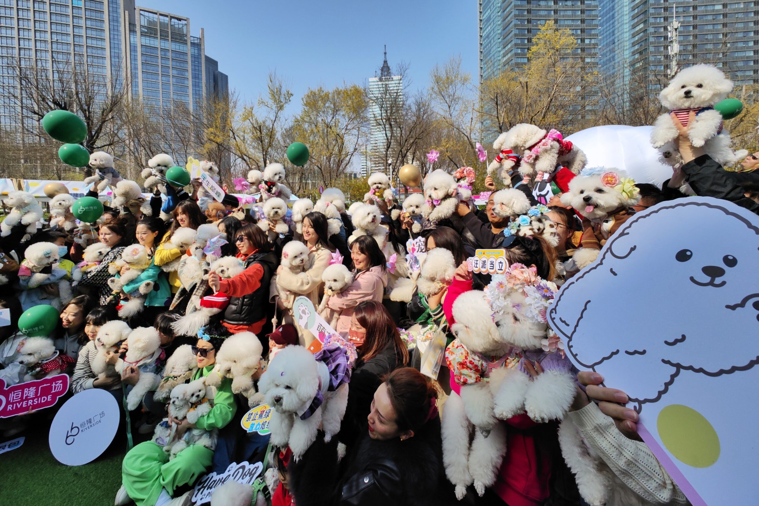 4月4日,清明假期第一天,随着气温逐渐回暖,人们纷纷赏花出游。在位于天津市和平区的“宠物友好乐园”,...