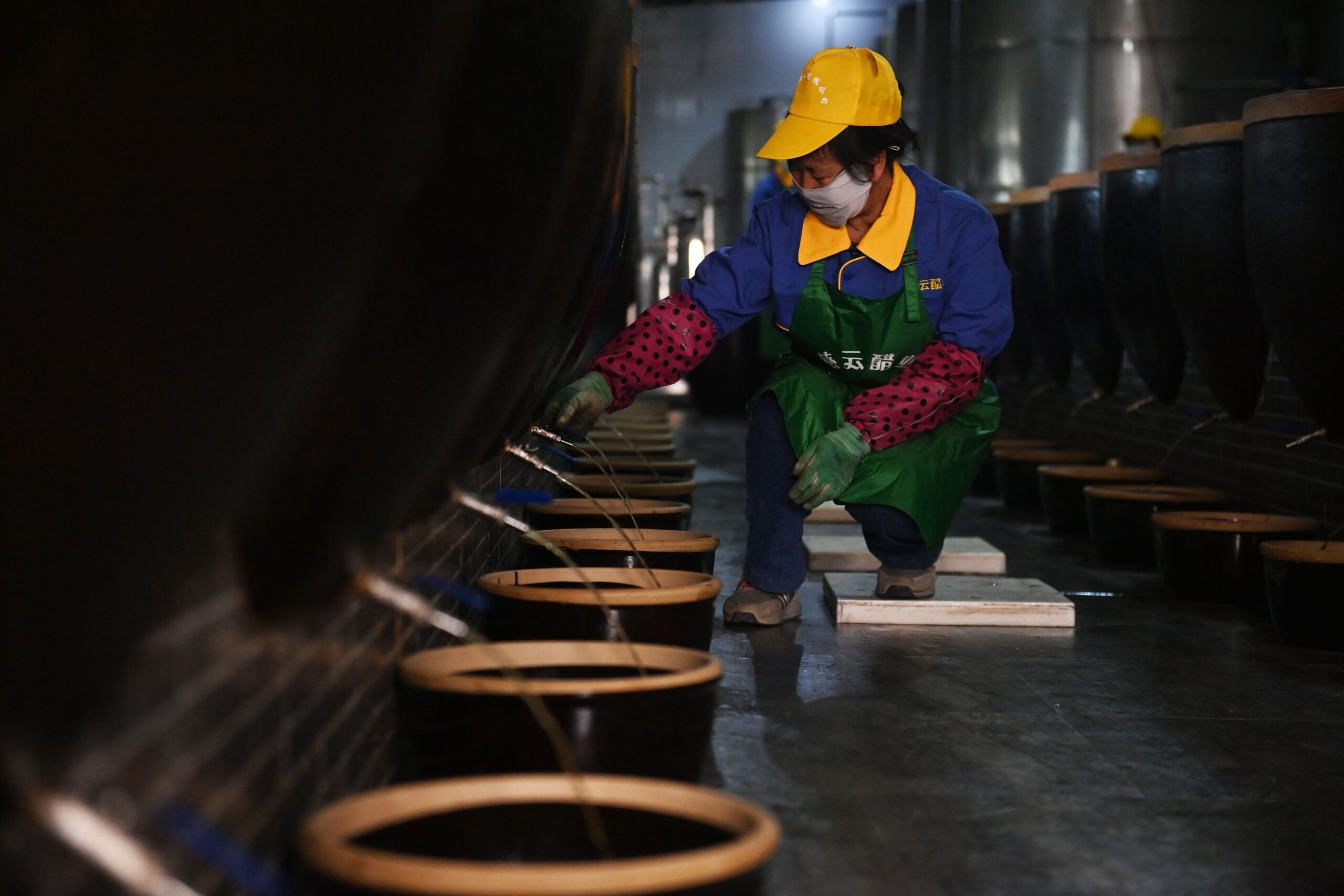 3月26日,甘肃省天水市武山县四门慈云醋业生产基地内,工作人员进行淋醋作业。近期,随着天水麻辣烫持续...
