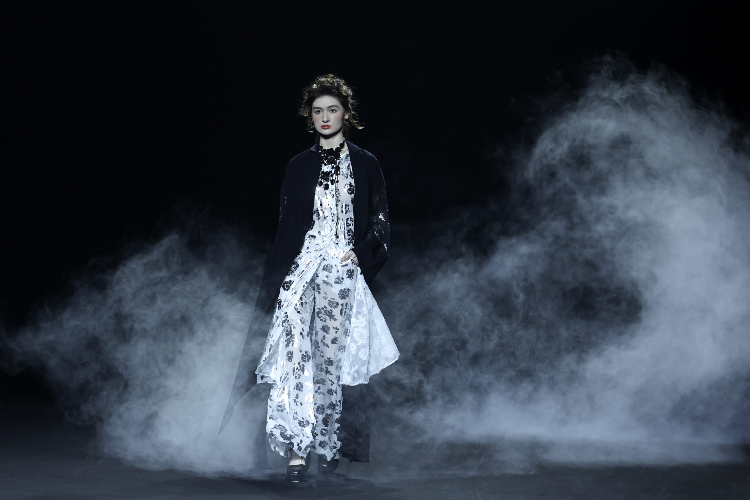 3月26日,模特在北京展示设计师张义超的时装作品。当日,2024秋冬中国国际时装周举行绸都盛泽风尚秀...