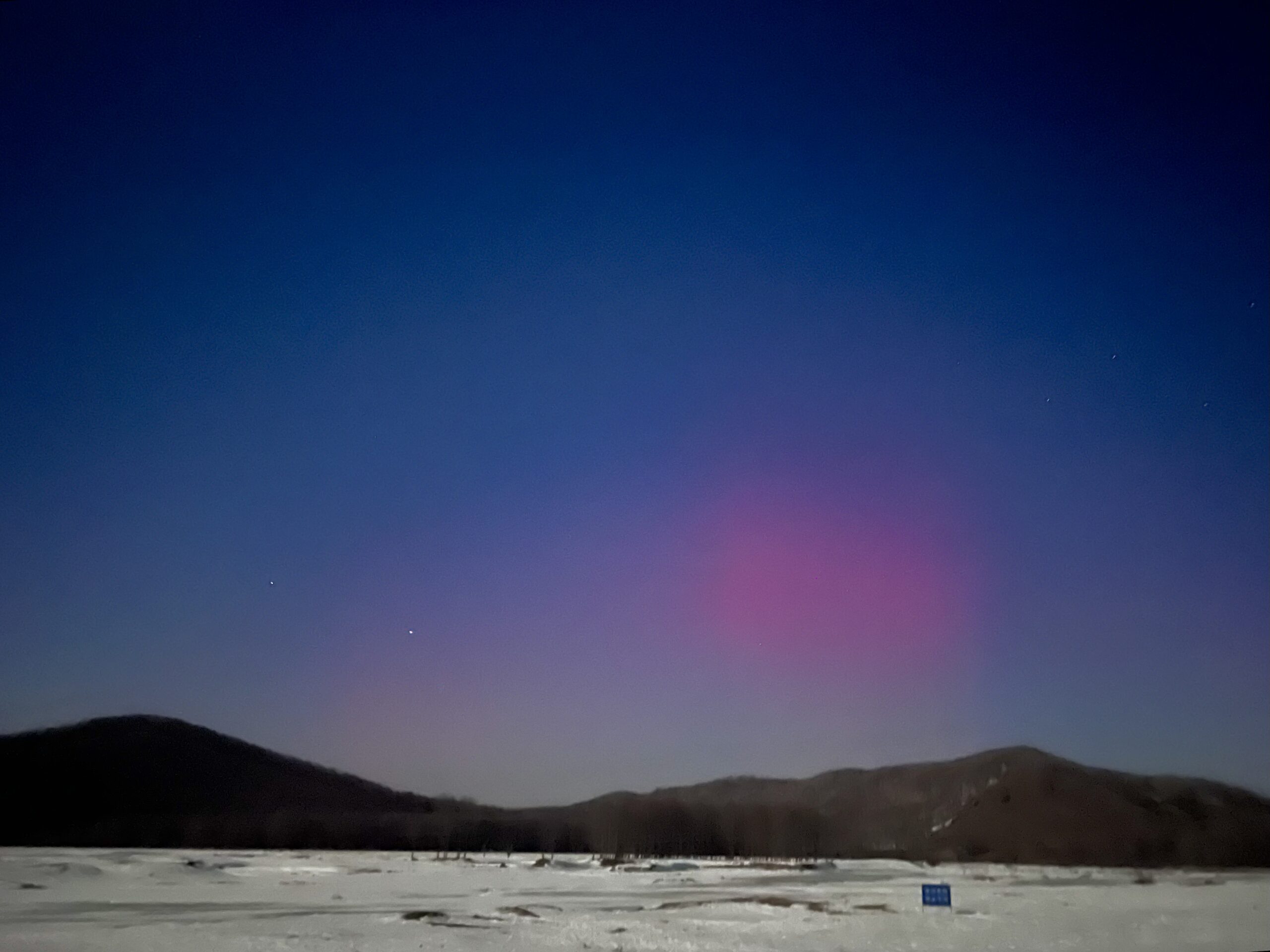 3月25日2时40分,“中国冷极”——内蒙古自治区根河市上空出现极光,红色的极光好似腮红晕染了湛蓝的...
