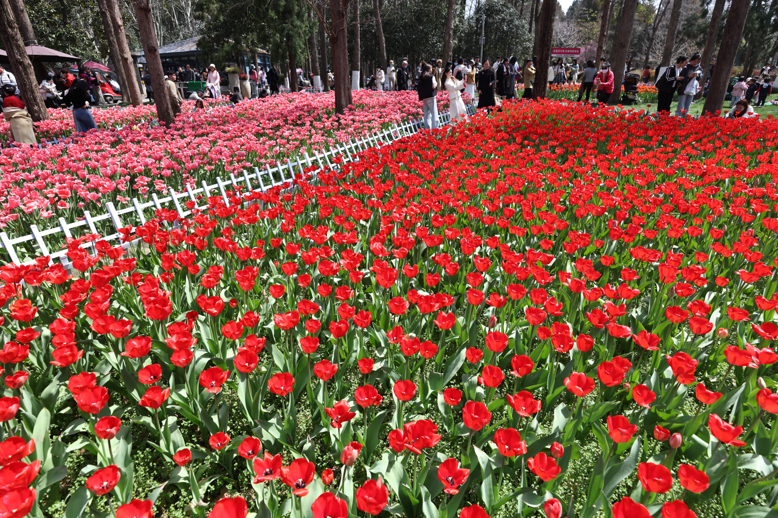 3月20日是中国农历春分节气,市民在南京东郊欣赏盛开的郁金香。随着当地气温升高,各色郁金香竞相开放,...