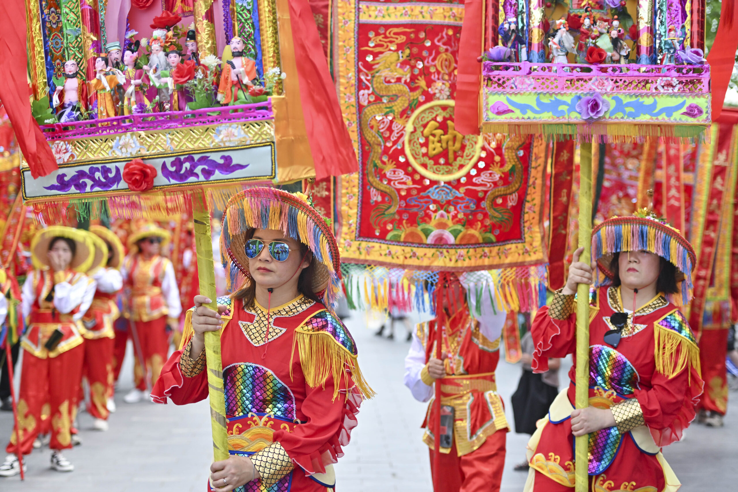 3月18日,2024年(第二十三届)海口冼夫人文化节之“装军巡游”活动在海南海口新坡镇举行。冼夫人文...