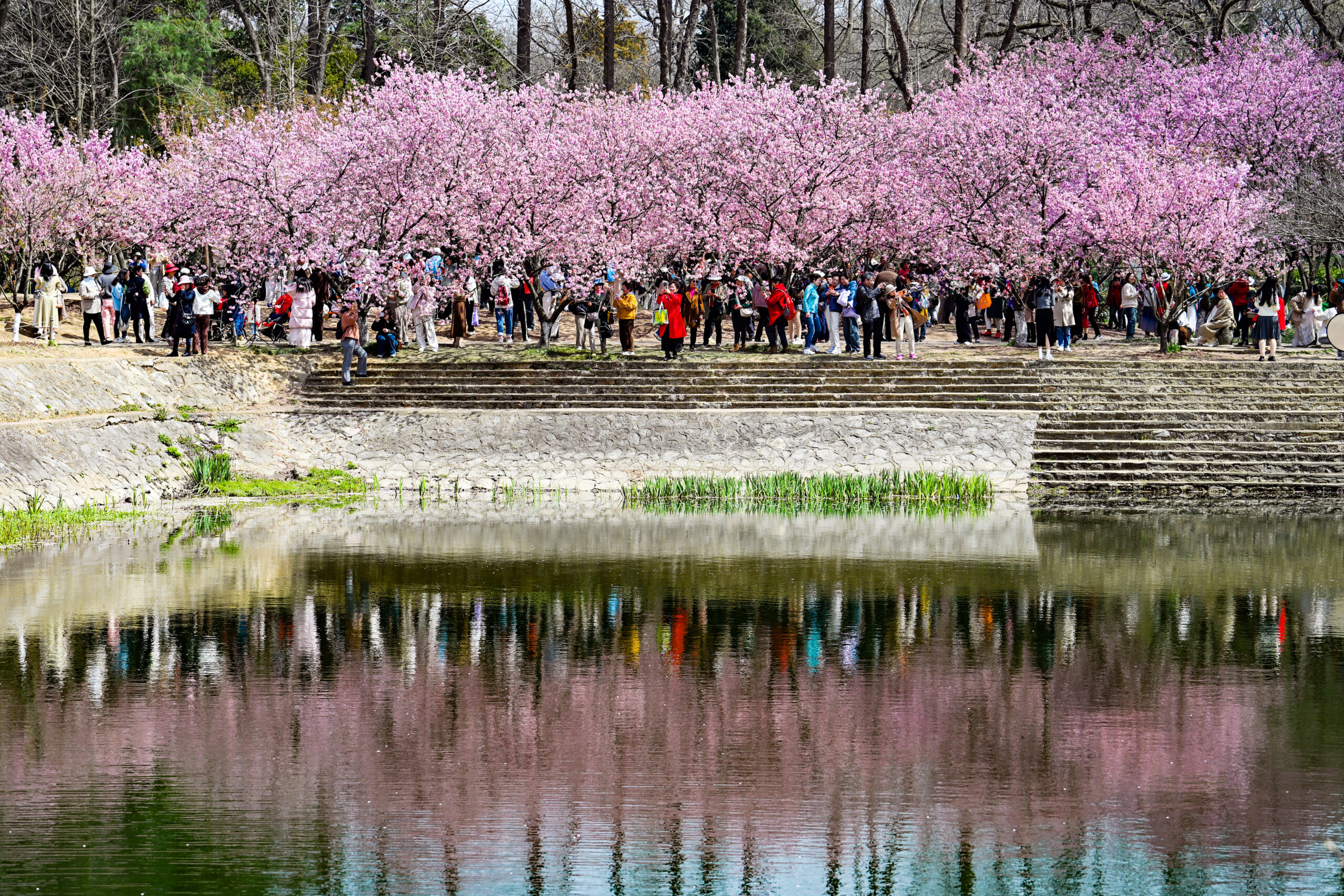 3月19日,市民欣赏绽放的樱花。近日,南京东郊椿寒樱、钟花樱等早樱品种竞相绽放,吸引民众前来踏青赏花...