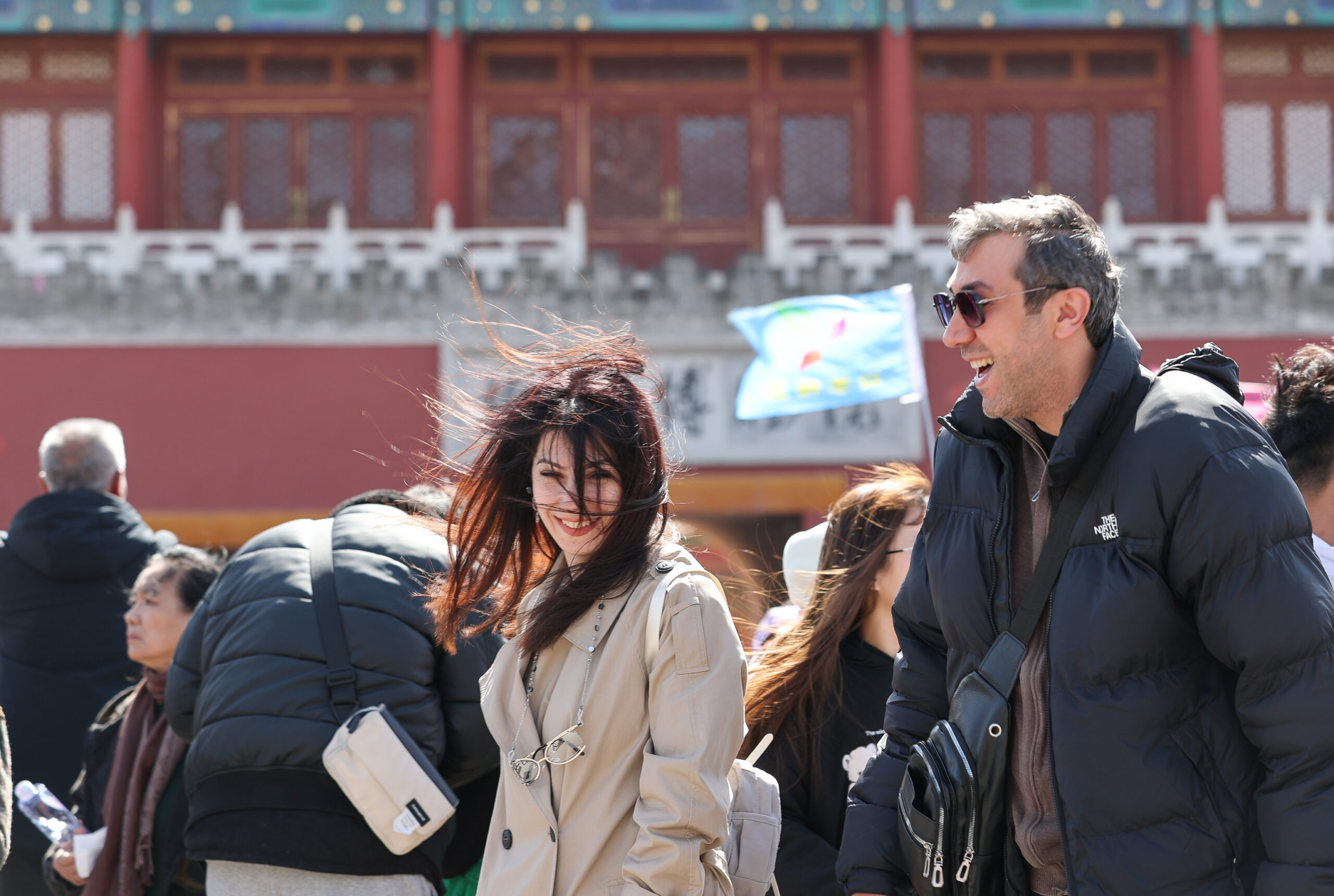 3月19日,游客在北京故宫博物院游览。当日,北京再次遭遇大风和沙尘天气。 未经允许不得转载:城市新闻...