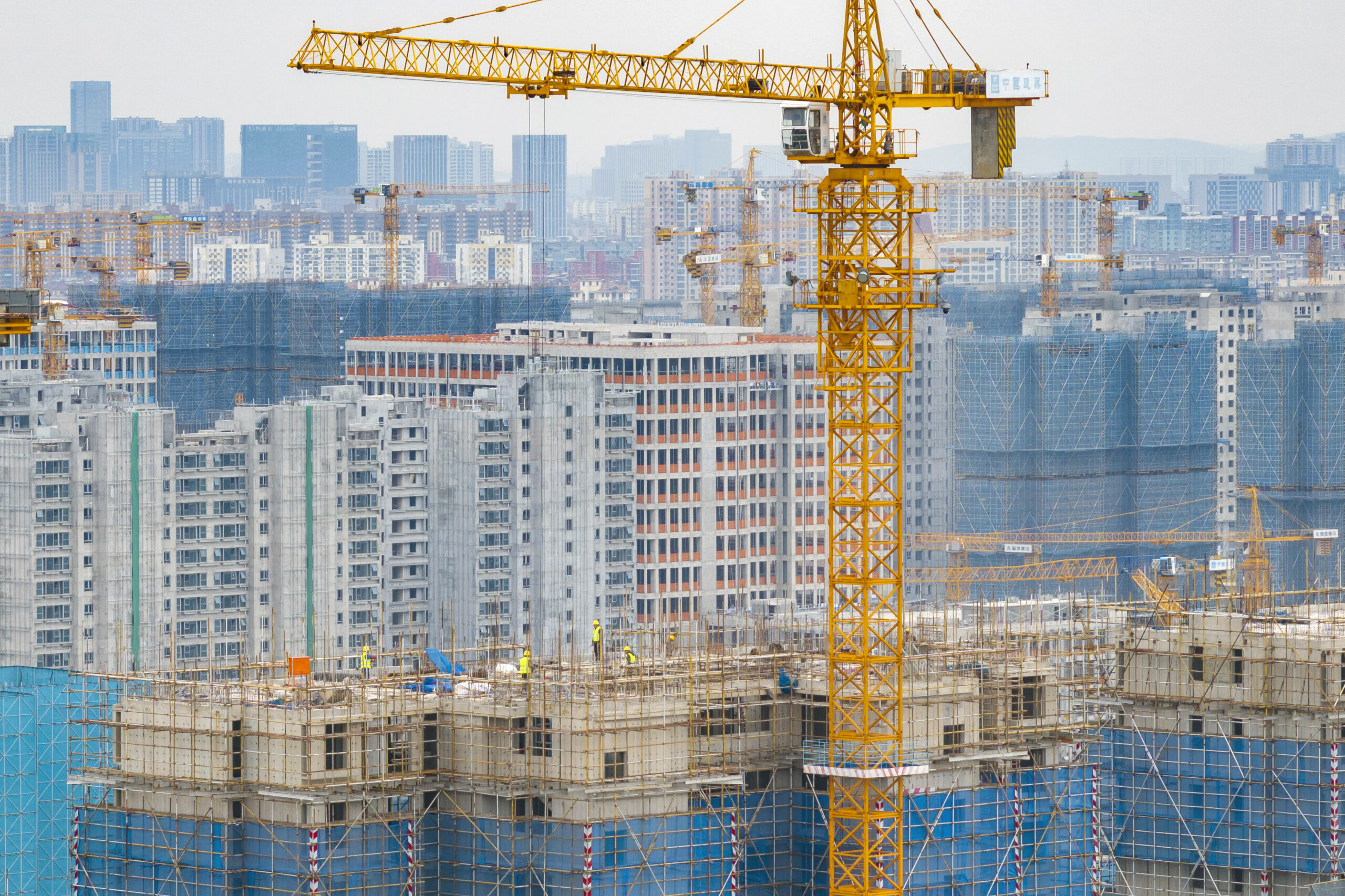 3月18日,江苏南京,航拍一处建设中的楼盘。当日,中国国家统计局发布信息,1-2月份,全国房地产开发...