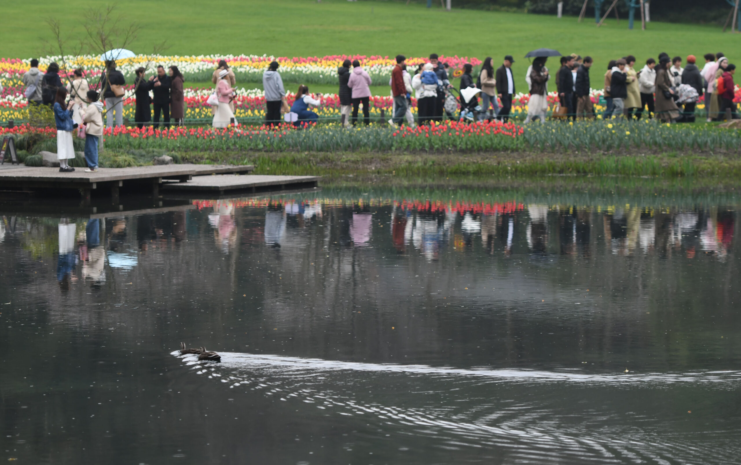 3月18日,游人观赏郁金香。江南春日,浙江杭州西湖太子湾约40万株郁金香次第开放,烂漫景象令人流连。...