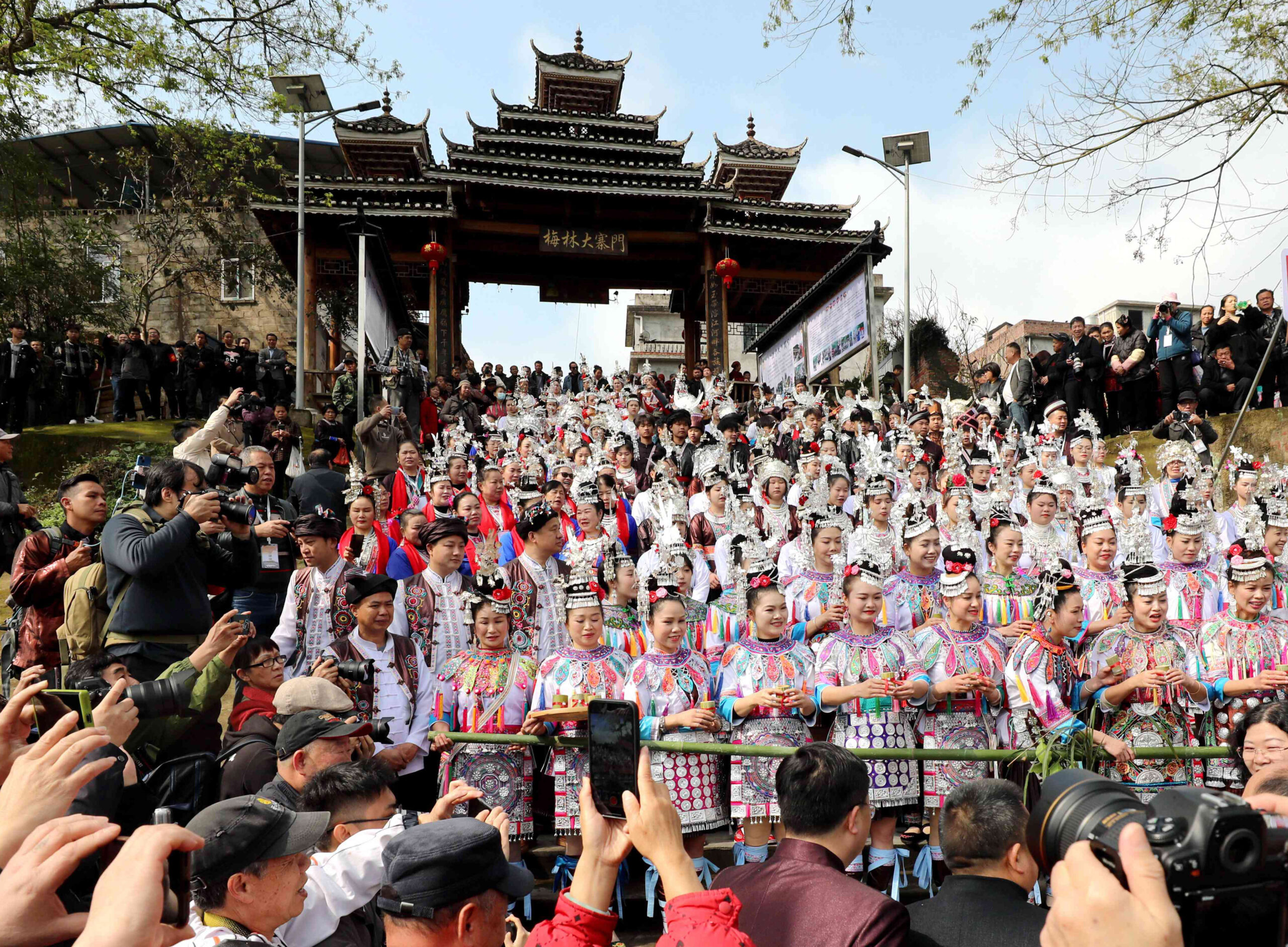 3月11日,在广西三江侗族自治县梅林乡,“二月二”侗族大歌节活动吸引游客前来体验侗乡风情。侗族大歌有...